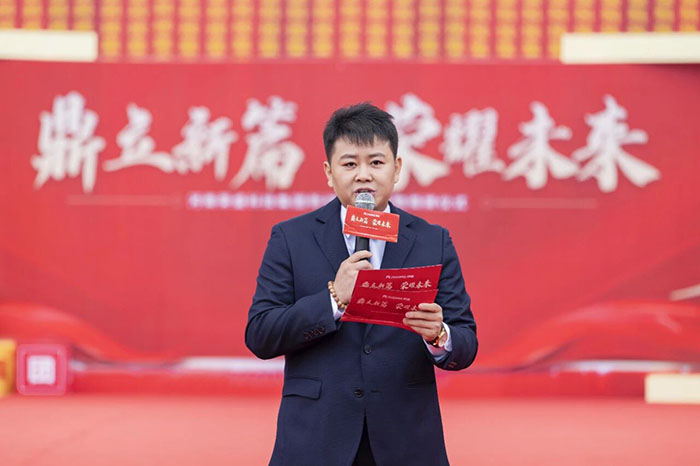 zui后,在熱情洋溢的現(xiàn)場(chǎng)氛圍中,河南榮盛科技集團(tuán)董事長(zhǎng)楚科奇發(fā)布了致辭。他首先代表集團(tuán)向蒞臨現(xiàn)場(chǎng)的各位領(lǐng)導(dǎo)、嘉賓及全體員工表示熱烈歡迎與誠(chéng)摯感謝。楚總回顧了集團(tuán)十二年的發(fā)展歷程,指出新材料生產(chǎn)基地的建成,凝聚了全體榮盛人的智慧、汗水與堅(jiān)守,是企業(yè)十二年奮斗征程上的重要里程碑,更是企業(yè)面向未來(lái)、決勝未來(lái)的戰(zhàn)略新起點(diǎn)。楚總強(qiáng)調(diào),新工廠的順利落成,得益于各級(jí)主管部門的大力支持與服務(wù),也離不開(kāi)集團(tuán)管理層的協(xié)同與一線團(tuán)隊(duì)的奮力拼搏。他特別感謝了王海軍總經(jīng)理及集團(tuán)管理層,稱贊其在項(xiàng)目戰(zhàn)略定位與資源配置中發(fā)揮的關(guān)鍵作用;同時(shí),他也向宋廣林總經(jīng)理及全體建設(shè)者致敬,感謝他們不畏艱辛、全力以赴,將一片荒蕪之地打造為現(xiàn)代化智能工廠。